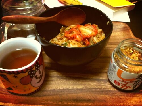 お昼はザクザク辣油をたっぷりかけた野菜餃子!夜は葱たっぷりキムチチャーハン!! 隠し味にチーズとオカズ生姜! 隠れてないけどね。(笑寝不足ながらも、水中歩行はしっかりこなして、今夜はよく眠れそーだ。ポカポカしとんねんで。(笑